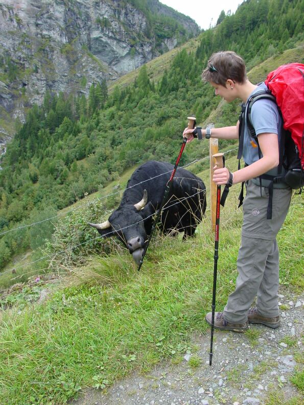 In einer knappen Stunde erreichen wir im Tal Evolène, ein nettes Dorf. Wir waschen einige Klamotten und ruhen uns ein wenig aus. In einem netten Lokal essen wir Crêpes und erfahren dass die Häuser wegen der Ratten aufgebockt sind. Später gibt's Ärger mit der Chefin in unserem Hôtel Arzinol, die sich weigert, uns um 6.45h Frühstück zu machen, damit wir um 7.30h den Postbus nach La Sage nehmen könnten. Und das obwohl wir die einzigen Gäste sind. Außerdem verlangt sie für Kreditkartenzahlung 3% Aufschlag - Servicewüste nicht nur in Deutschland?