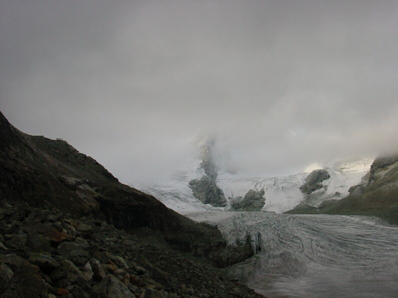 Rückblick auf den zunächst wolkenverhangenen Gletscher |