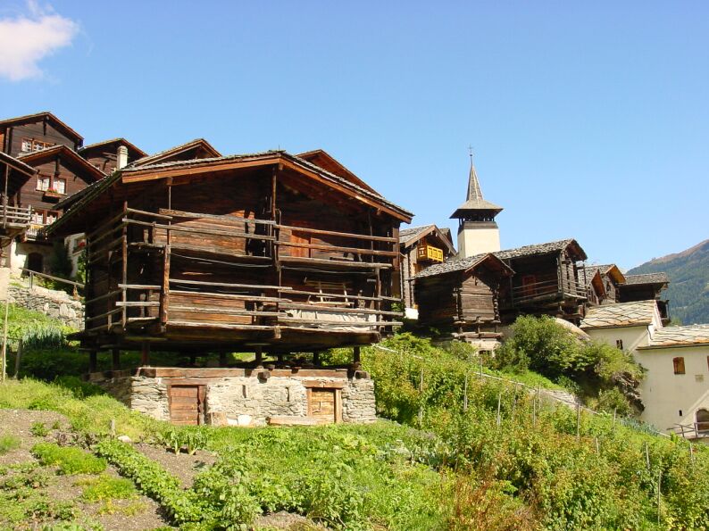 Die Enttäuschung am Fahrplan des laut Bibel "frequent" Postbus über die Ankündigung, der nächste Bus führe um 17.30h, verfliegt schnell als wir vom Barrage-Personal erfahren, dass um 11h der nächste Bus käme. Das stimmt sogar, es ist aber kein Postbus. Dies hat den Nachteil, dass offenbar durch nichts verboten ist, uns für die knapp 10minütige einfache Fahrt nach Grimentz den Wucherpreis von 19.50 (!!) SFr abzunehmen. Grmmmppfend erreichen wir das ziemlich ausgestorbene Wintersport-Nest Grimentz.