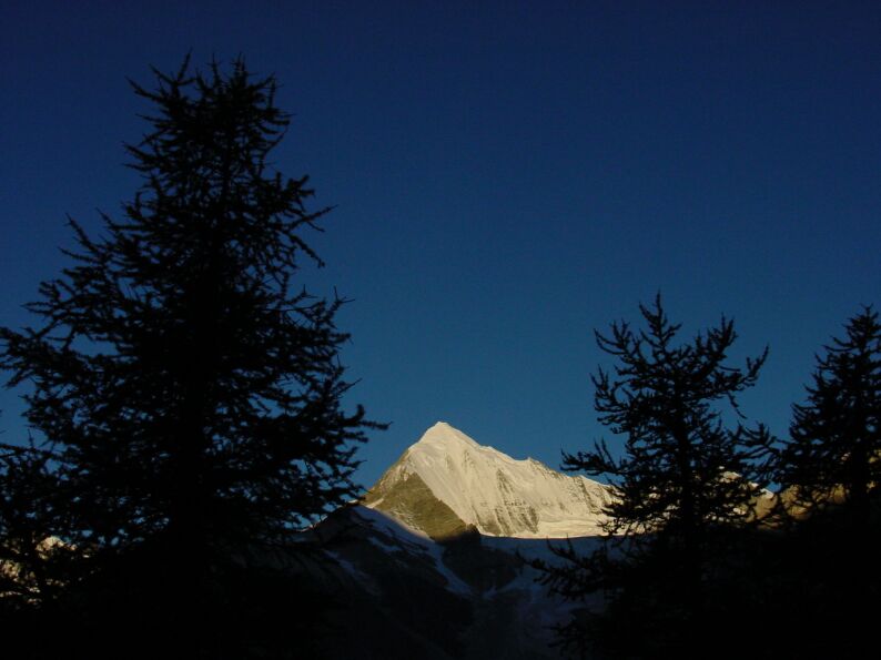 Um halb acht liegt nur die Spitze des Weißhorns im Sonnenlicht |