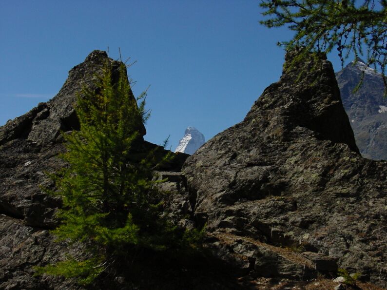 Kurz vor Täsch zeigt sich nochmal das Matterhorn |
